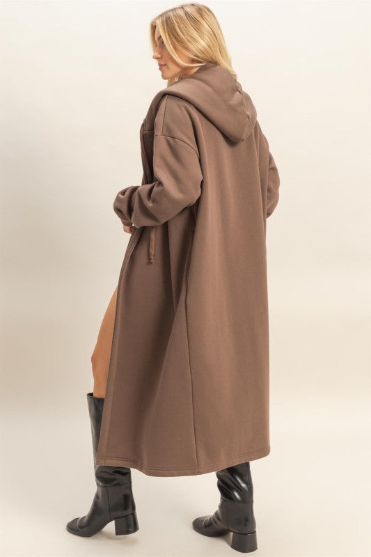 Longline Open Hooded Sweater - Brown