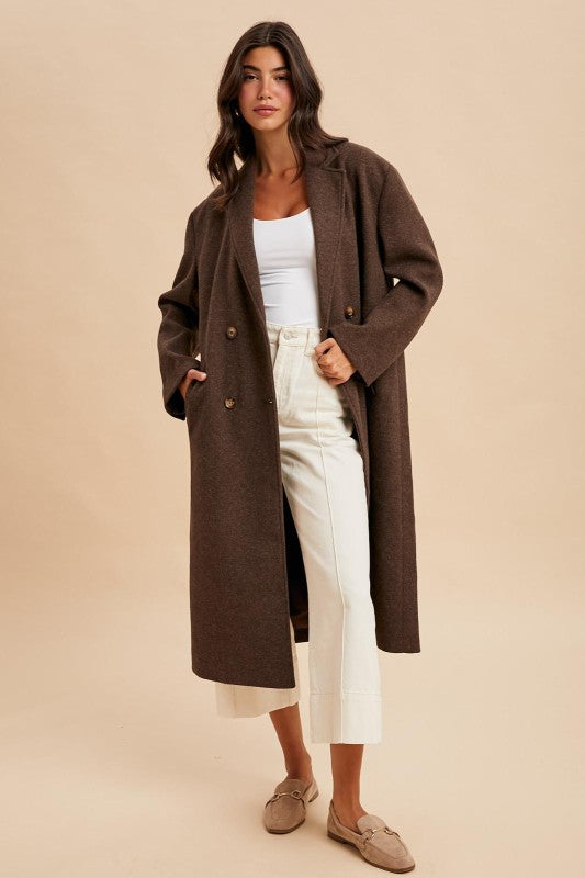 Felted Double Breasted Lapel Duster Coat - Mocha