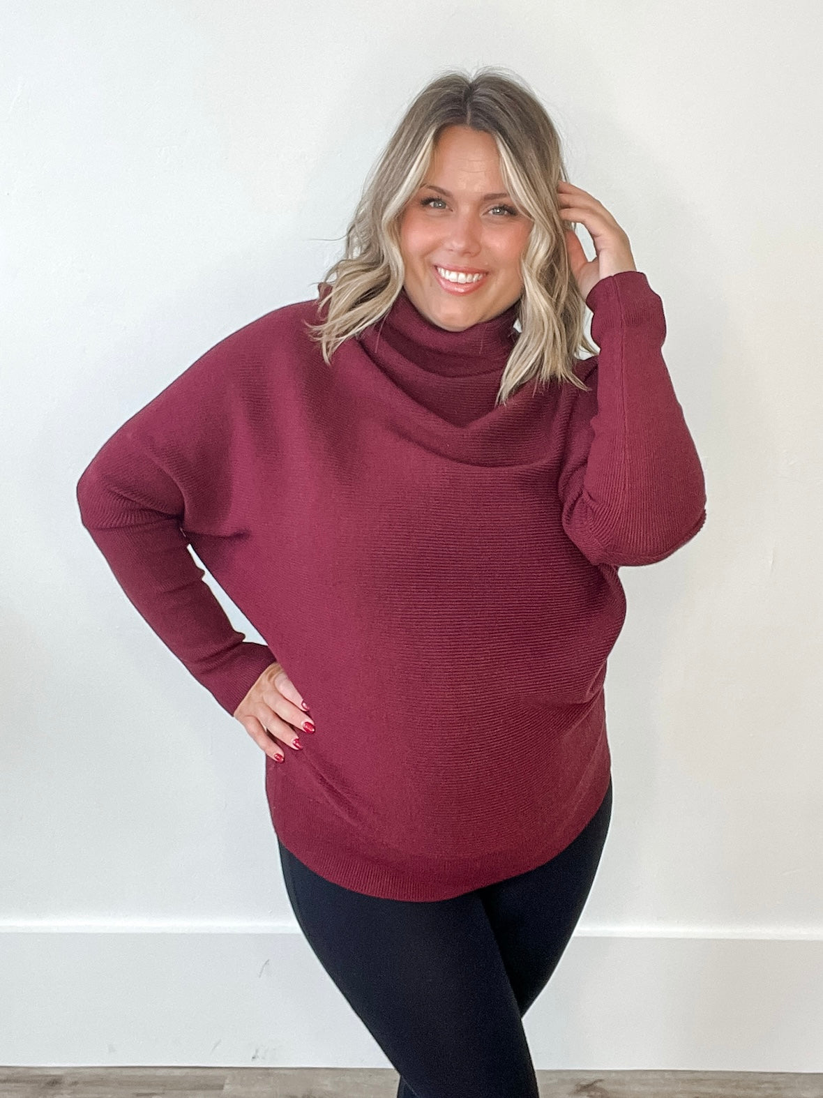 Slouch Neck, Dolman Sleeve Sweater - Wine