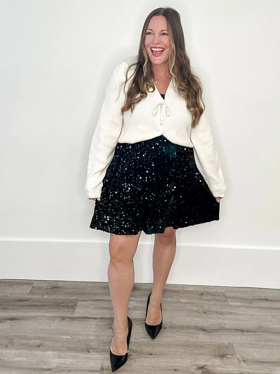 We love this cardigan overtop of any dress or with any skirt or pant this holiday season