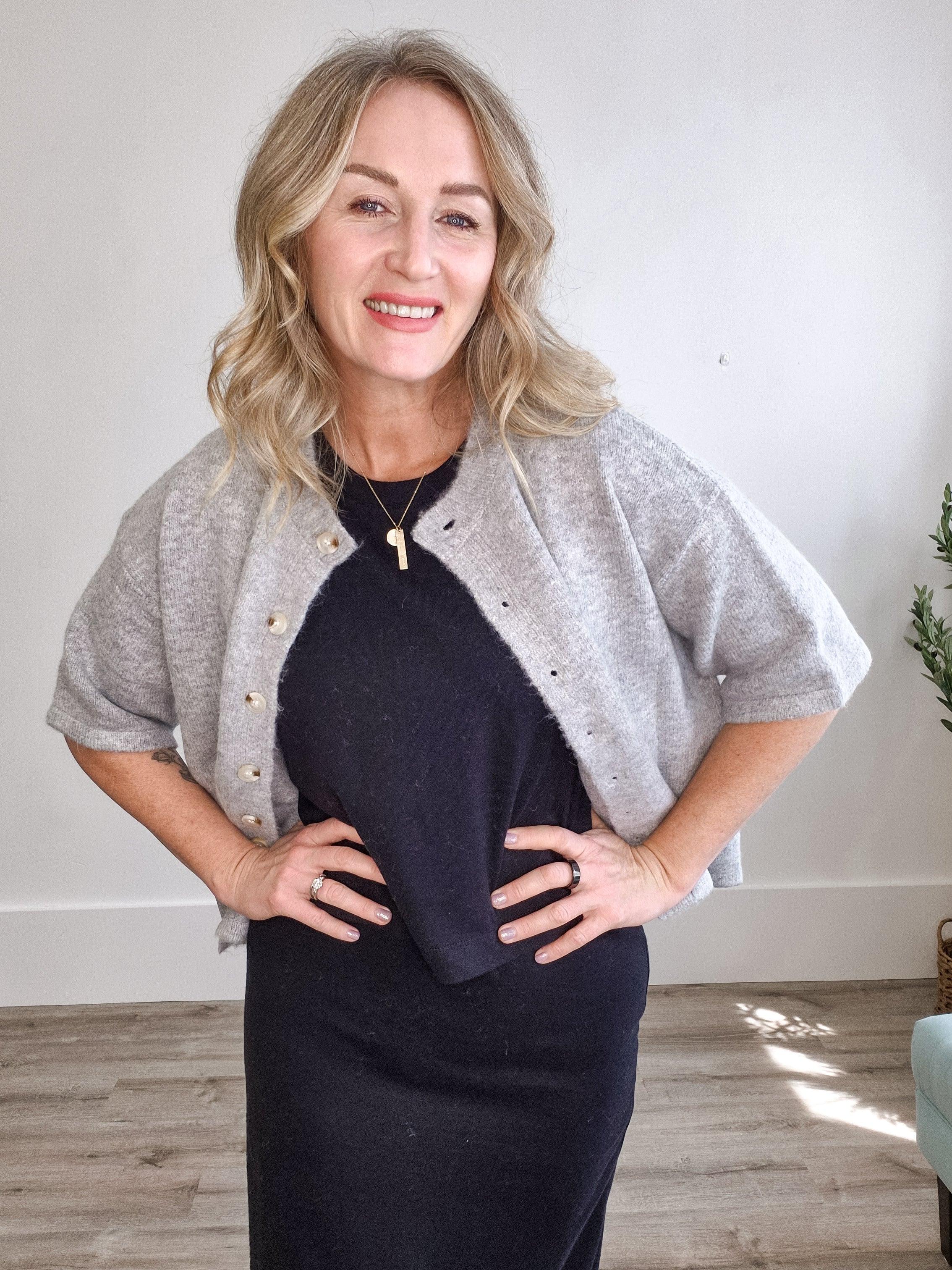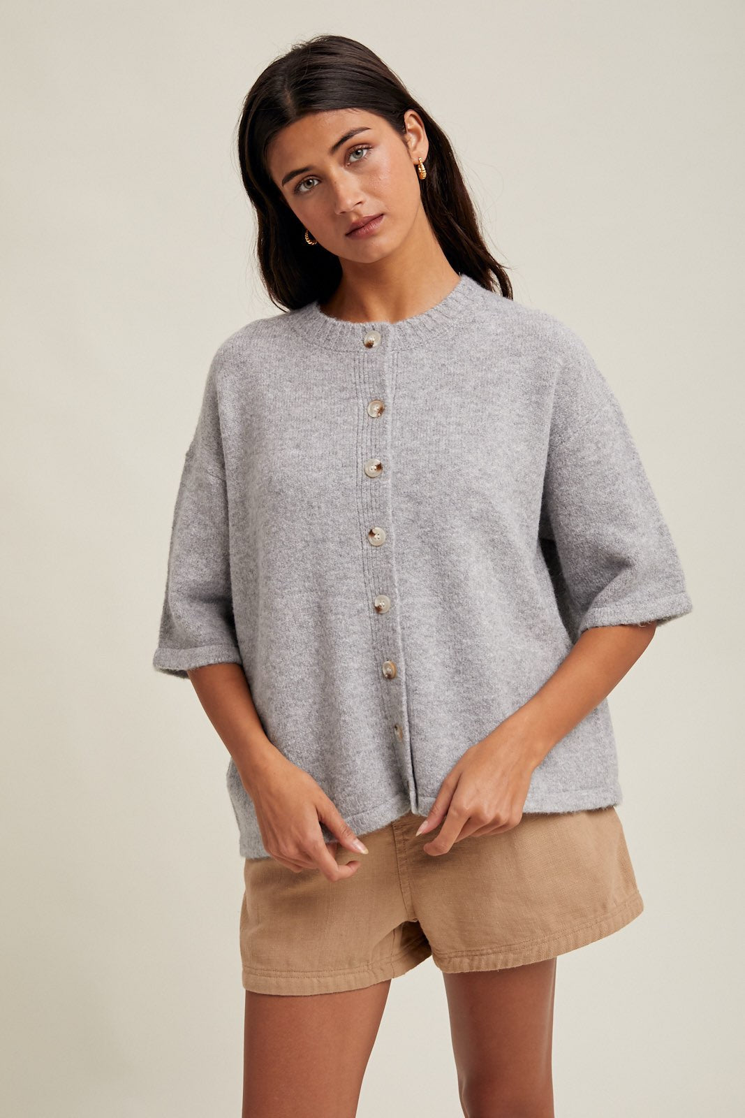 Wrap yourself in cozy charm with this Brushed Button Up Sweater. Its ultra-soft knit and loose, oversized fit make it perfect for relaxed days, while the half-length sleeves and crew neckline add a playful touch. Button it up for a cute, casual look that feels as good as it looks!